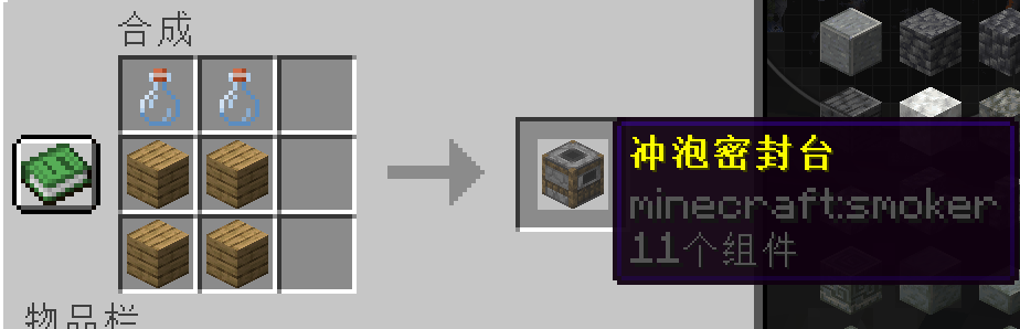 封装台的合成需要两个瓶子,四块木板